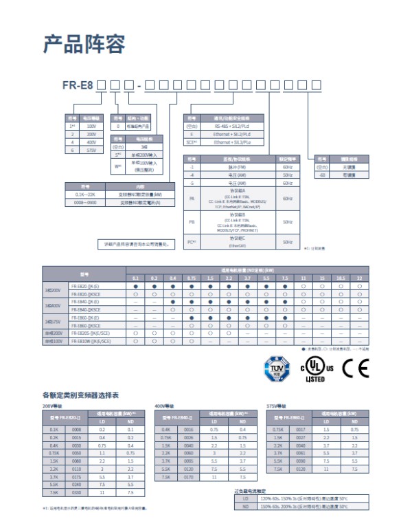 三菱變頻器E840系列 選型資料見附件